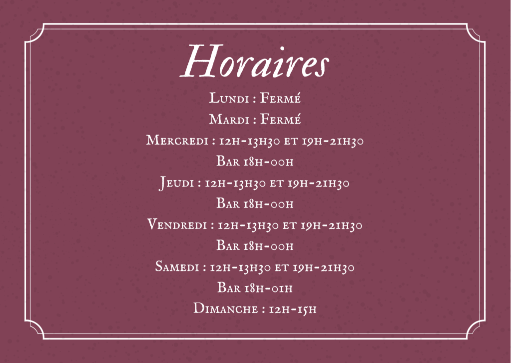 Pour réserver une table, appelez-nous au 06.28.24.64.66 ou utilisez le formulaire ci-après.